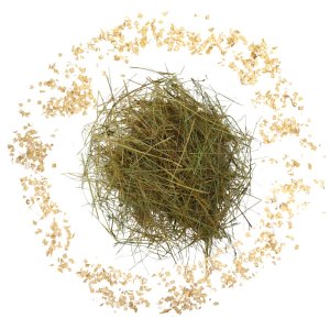 Složení: seno z luk 98 % (může obsahovat bojínek luční, ovsík vyvýšený, medyněk vlnatý, kostřavu červenou, lipnici obecnou, kostřavu luční, srhu říznačku, psárku obecnou, jetel plazivý, jetel luční, krvavec toten, kopretinu bílou, jitrocel kopinatý, druhy zvonků a další luční byliny), pastinák 2 %.