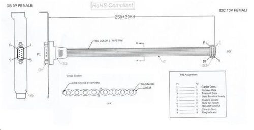 Vývod pro COM - sériový port RS232 ze základní desky na zadní stranu PC.
