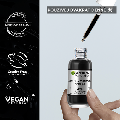 Sérum se 4 % obsahem aktivních látek [NIACINAMID + AHA + BHA] redukuje pupínky a výskyt skvrn a nedokonalostí. Obnovuje povrch pleti a zanechává ji hladší a sjednocenější.
