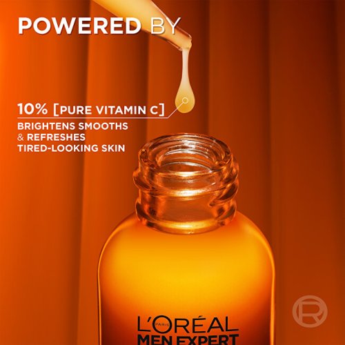 Účinné pleťové sérum pro muže s 10 % koncentrovaným vitaminu C, které rozjasňuje, vyhlazuje a osvěžuje pokožku pro navracení života mdlé a unaveně vypadající pleti.