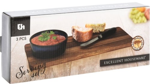 • servírovací set podnosu, misky a nože pro nejrůznější příležitosti- ideálně použijete při servírování předkrmů- materiál: kamenina s lesklou glazurou, akátové dřevo- stylový podnos z akátového dřeva- roztírací nůž s čepelí z nerezové oceli- akátové dřevo je robustní a má krásnou texturu- perfektní pro servírování předkrmů, pochutin, dipů- žáruvzdorné do 200 °C, misku lze využít také k zapékání- miska je vhodná do myčky nádobí- sada obsahuje servírovací tác, misku a nůž- rozměry podnosu: 30 x 12 x 1,2 cm- rozměry misky: 9 x 3,5 cm- nůž 14,9 cm- barva misky: tmavě zelená- značka: Excellent Houseware