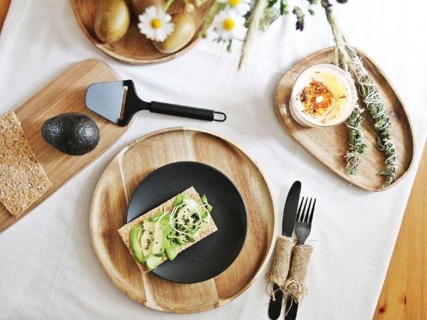 • Zvýšené okraje – usnadňují přenášení naplněného tácu a zabraňují stékání tekutin, pokud se rozhodnete servírovat na něm hlavní chod