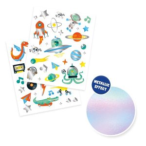 Úžasná tetování s metalickým efektem rozzáří dětem den. Ať už se tetováním ozdobí na večírek, maškarní bál nebo jen tak pro zábavu – zaručeně zazáří! Tetování jsou bezpečná pro pokožku, snadno se nanášejí na pokožku a stejně snadno se také smývají. Sada obsahuje 50 metalických tetování s různými veselými motivy. Kosmeticky testováno. Rozměry balení: 20 x 15 x 0,5 cm. Věk: 3+