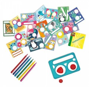 Spirálkové kreslení podporuje tvořivost a zručnost. Dokončete obrázky zvířátek na 16 předtištěných kartách pomocí jednoho ze tří červených ozubených tvarů a rámečku. Vyberte kolečko, umístěte jej do rámečku a točivé kreslení začíná. Sada obsahuje: 1 rámeček se 3 ozubenými kolečky, 16 předtištěných kartiček, 6 barevných fixů, návod. TIP: Nejdříve si vyzkoušejte tvoření obrazců se spirálkami na čistém papíře. Tak se můžete lépe rozhodnout, jak obrázeky dokončíte.