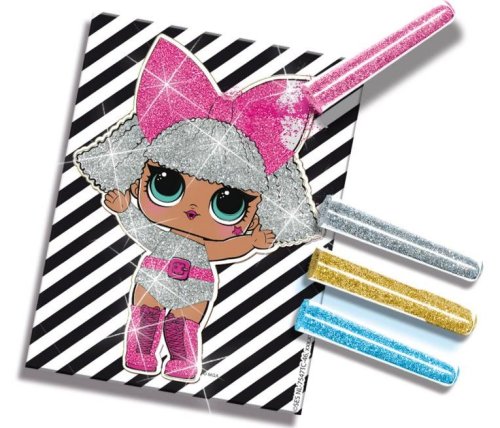 Ozdob si své oblíbené postavy L.O.L. nádhernými, zářivými třpytkami! Postupně odlepuj oddělené části a každou část zvlášť posyp barevnými třpytkami. Výsledek tě ohromí. Balení obsahuje: