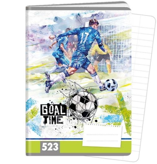 Sešit 523 GOAL TIME, velikost A5, 20 listů, nezbytná součást školních potřeb, vhodný pro žáky 1. a 2. ročníku, široké řádky 12 mm.