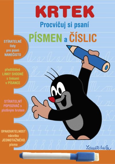 Zábavný sešit s Krtkem vytvořen na základě doporučení poradny pedagogů, sešit slouží k opakovanému nácviku písmen, číslic, hodin, předtištěné linky korespondují s linkami v písankách, lesklý povrch spolu s popisovčem zajišťuje opakovatelnost. Hravé učení může začít! Rozměr: 16,5 x 24 x 2 cm Vhodné pro děti od 3 let