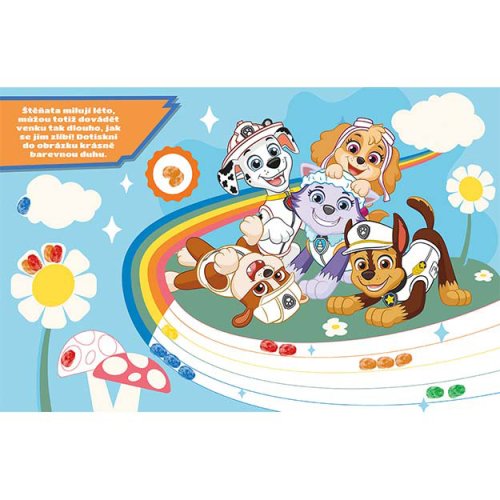 Kreativní sešit s motivem Tlapkové patroly je ideální pro první výtvarné pokusy těch nejmenších. Obsahuje prstové barvy a zábavné obrázky k dotvoření otisky prstíků. Jednoduché otisky prstíků oživí obrázky a podporují dětskou kreativitu. Barvy jsou netoxické, omyvatelné a bezpečné pro dětskou pokožku. Titul obsahuje 24 stran plných barevných obrázků k dorazítkování prstíky a 6 prstových barev. Vhodné pro děti od 3 let.