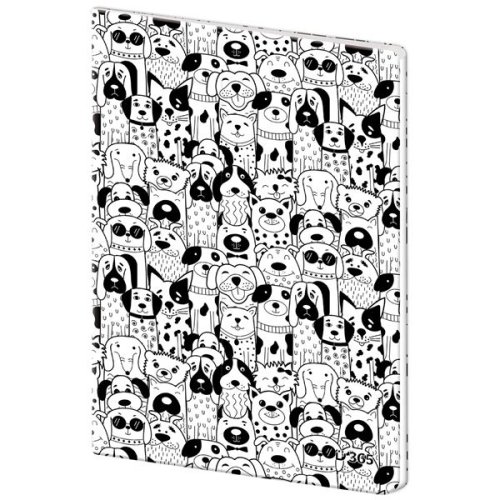 Stylový linkovaný sešit formátu A5 s motivem pejsků Odolné plastové desky, kulaté rohy pro pohodlné používání Ideální pro školu i poznámky na cesty Počet listů: 40 Formát A5