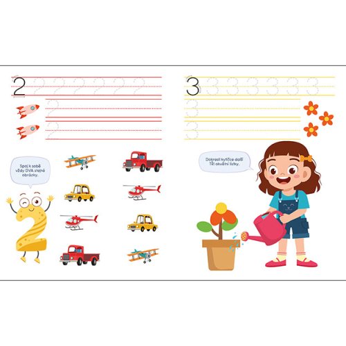 Titul obsahuje 22 stíratelných stran s úkoly pro trénování předškolních dovedností. Fix je součástí balení.