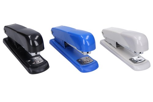 Sešívačka o rozměru 12,5x3,5 cm. 3 barevné varianty: modrá, černá a bílá.