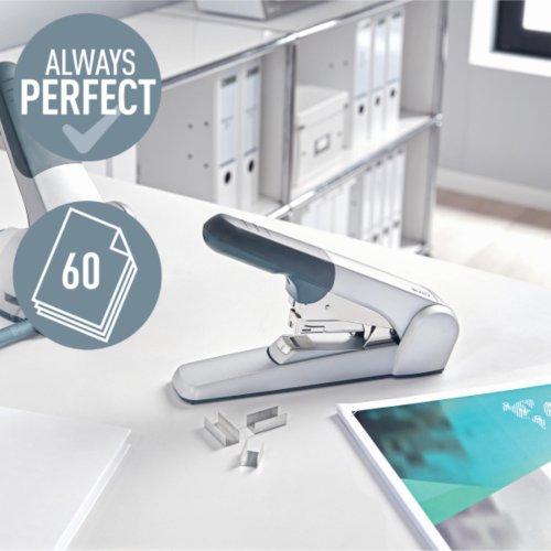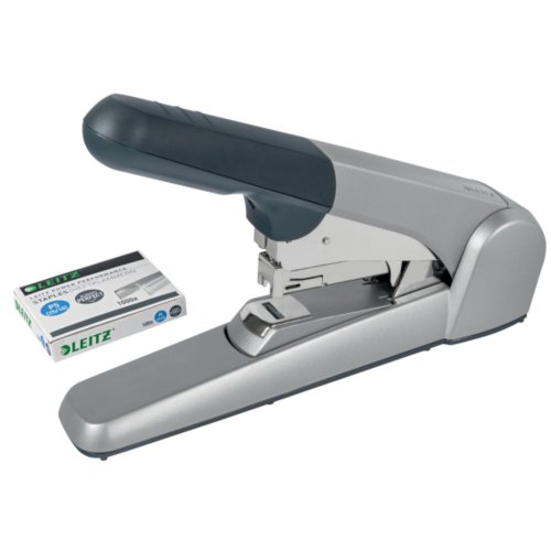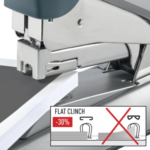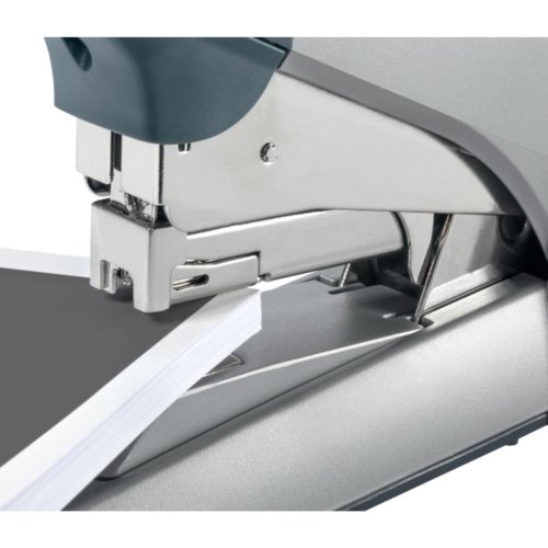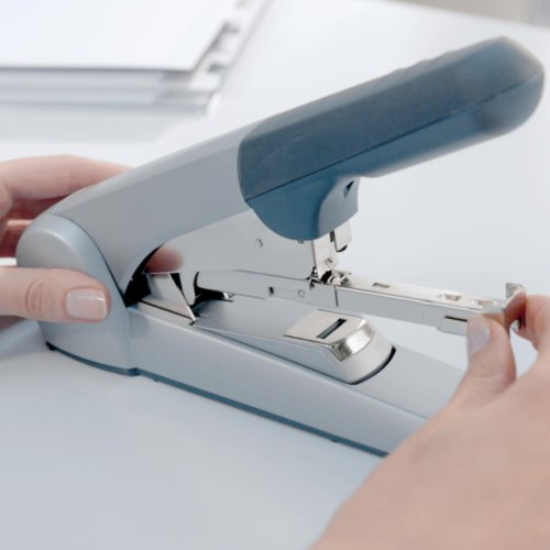Lehký model velkokapacitní sešívačky v moderním designu Vyrobená z plastu s kovovými mechanickými díly Uzavření ploché sešívání; přední plnění drátků Průhled pro informaci o potřebě doplnění drátků Součástí …