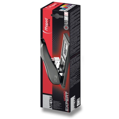 Komfortní sešívačka Maped Expert HD 90 s kovovým mechanismem proti zablokování drátků. Měkká zóna stisku. Možnost regulace hloubky vkládání papíru až na 55 mm. Velkokapacitní zásobník na drátky, kapacita 24/6-8 na 110 drátků, 23/8-10 na 108 drátků, 24/10 a 23/12-13 na 105 drátků. Na 90 listů. 10 let záruka.