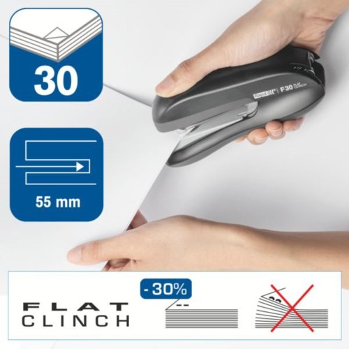 Sešívačka s celokovovou mechanikou potažená ABS plastem a pryží pro snazší sešívání Typy sešívání: ploché, uzavřené; horní plnění drátků Rozměry: 4,6 x 7,9 x 14,8 cm (š x v x h) Hloubka vkládání: 5,5 …