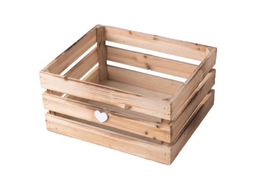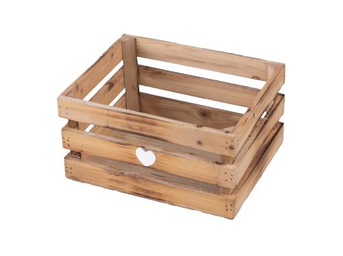 Sada tří přírodních dřevěných bedýnek s malým bílým srdíčkem uprostřed o rozměrech 300x250x150mm, 250x200x130mm a 200x150x110mm je univerzálním a praktickým řešením pro uskladnění a organizaci vašich věcí. Díky různým rozměrům bedýnek se hodí pro širokou škálu předmětů.