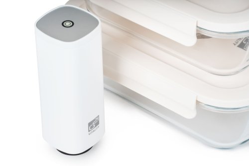 Ruční vakuovačka G21 na baterie je kompatibilní s širokým spektrem vakuovacích doplňků. Vakuujte potraviny v dózách, sáčcích nebo v lahvích.