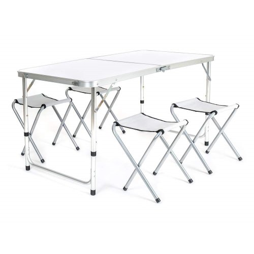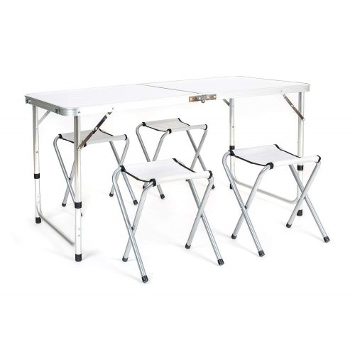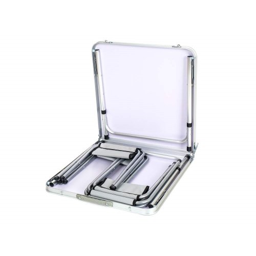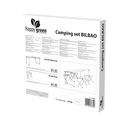 Kampingová sada BILBAO obsahuje stůl s konstrukcí z hliníku a 4 ocelové stoličky. Sada je vhodná pro kemping, cestování, outdoor, ale i na zahradu. Její nespornou výhodu je složení do kufříku o rozměrech 62 x 7,5 x 63 cm pro snadné přenášení.