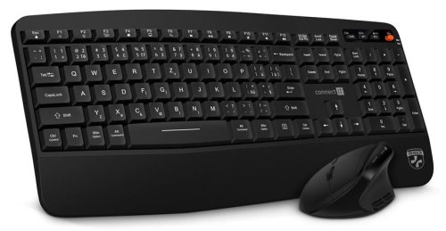 Klávesnice kromě klasických funkcí disponuje 12 multimediálními a funkčními klávesami, které se obzvláště hodí do kancelářského prostředí. Příjemný ergonomický 3 polohový náklon klávesnice pomáhá proti únavě zápěstí během dlouhých pracovních relacích. Samozřejmostí je jeden nano přijímač pro obě zařízení pro úsporu USB-A portů, který má dosah až 10 metrů. K tomuto setu jsou v balení dodávány originál CONNECT IT alkalické baterie (1x AA + 2x AAA).