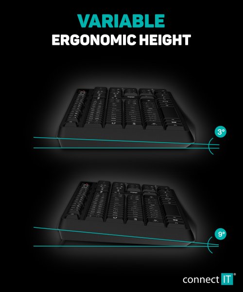 Praktický set klávesnice a myši OfficeBase od značky Connect IT perfektně doplní vybavení vašeho počítače či notebooku. Obě zařízení fungují bezdrátově a jejich instalace je díky Plug & Play velmi snadná. Do klávesnice a do myši vložíte baterie (součástí balení), zapnete svůj počítač a připojíte nano přijímač do USB portu. Poté už jen počkáte, až se nainstalují potřebné ovladače. Set využijete nejen pro práci, ale také pro běžné domácí použití.