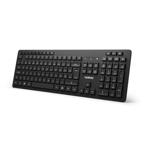Tenké tělo v elegantním černém provedení je osazeno 121 klávesami ve standardním rozložení. To znamená, že je při psaní najdete přesně tam, kde byste je intuitivně očekávali. Pohodlné používání Niceboy K10 podtrhuje osazení dvanácti multimediálními klávesami pro ovládání videí a hudby jedním dotykem. A další možnosti jako například ovládání prohlížeče nebo e-mailu umožňují sekundární funkce horních kláves F1-F12 v kombinaci s klávesou FN.