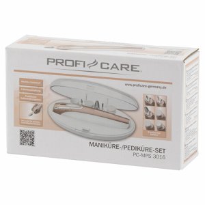 Set na manikúru MPS 3016 od značky ProfiCare v pohodlném úložném boxu. Zařízení je vybaveno 4stupňovým přepínačem, na kterém se přepínají rychlosti – 2 rychlosti na každou stranu. Zařízení je ergonomicky tvarované pro pohodlné držení. Pro lepší práci je dále vybaveno diodou pro osvětlení. Součástí balení je 6 různých nástavců: