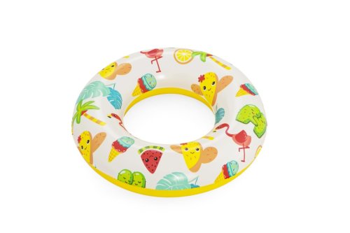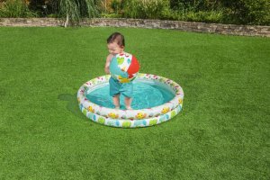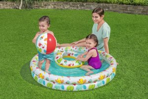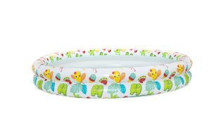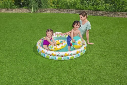 Součástí setu je také nafukovací kruh, který je určen pro děti ve věku 3 až 6 let. Kruh má rozměry 46 × 46 × 11 cm a je vyroben ze stejného materiálu jako bazének. Je zdobený stejnými barevnými motivy, díky čemuž ladí s celým setem. Tento kruh slouží nejen jako zábava, ale také jako pomůcka pro bezpečnější pobyt dětí ve vodě. Další součástí balení je nafukovací míč o průměru 27 cm, který je barevný a lemovaný stejnými motivy jako bazének a kruh, což umožňuje dětem interaktivní hru ve vodě.