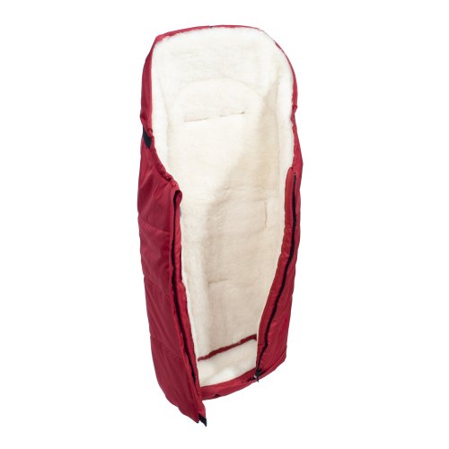Nepromokavý fusak s rozepínáním vpředu a rukávník na kočárek z ovčí vlny do nízkých teplot ve stejné barvě.