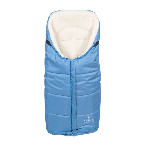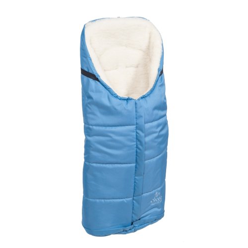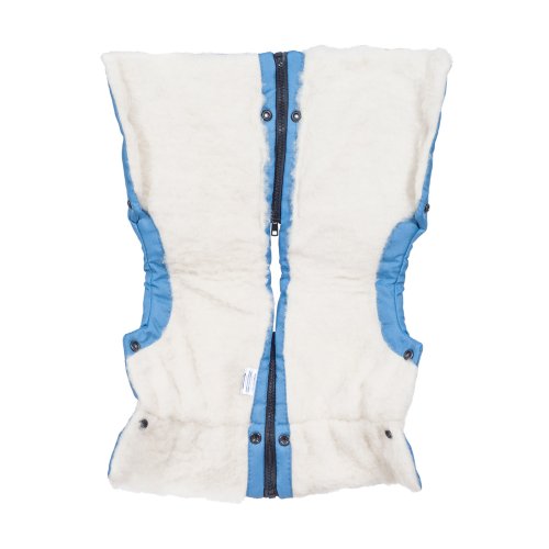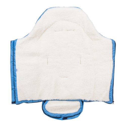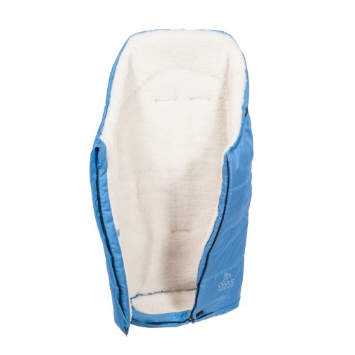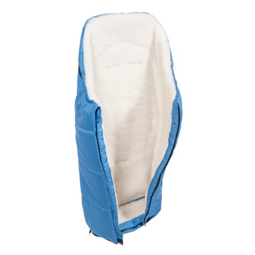 Nepromokavý fusak s rozepínáním vpředu a rukávník na kočárek z ovčí vlny do nízkých teplot ve stejné barvě.