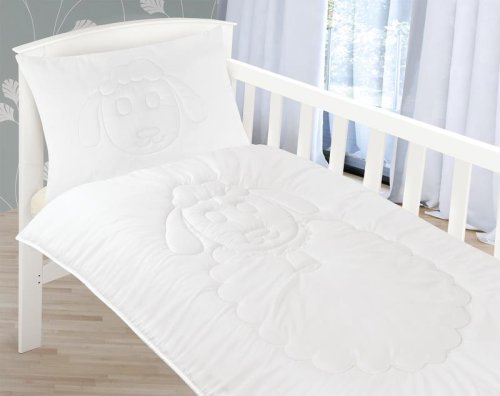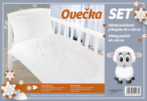 DĚTSKÝ SET OVEČKA materiál povrch 100% Polyester mikrovlákno, výplň 100% Polyesterové duté vlákno peřina 360g/m2 polštář 350g/m2 praní peřiny na 60°C praní polštáře - povlak na 60°C, výplň 40°C sušit …