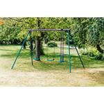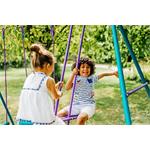Konstrukce houpačky zaručuje vysokou stabilitu s ocelovým rámem. Rám poskytuje trvalou ochranu proti rzi díky práškově lakované oceli, která je pozinkovaná zevnitř i zvenčí. Dvě houpačky na lanech můžete výškově nastavit.