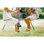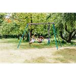 Pořiďte si na zahradu 3dílnou houpačku Plum, kde bude dostatek místa pro 4 děti najednou. Dvojitá houpačka má podporu pro nohy. Na jedno sedátko může dítě s maximální nosností 45 kg. Sestavená houpačka má rozměry 268 x 178 x 183 cm. Určené pouze pro venkovní použití pod dohledem dospělé osoby. Nevhodné pro děti do 36 měsíců.