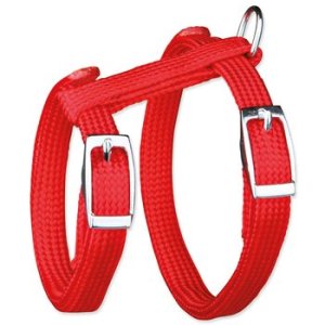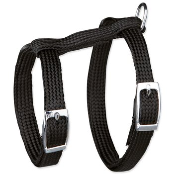 Postroj s vodítkem pro kočky milující procházky. Je vyroben z nylonu. Zvyšuje bezpečnost a předchází úrazům. Lehce nastavitelná velikost v rozmezí 22-42cm. Vodítko je dlouhé 1,25m. Zapínaní pomocí kovových přezek.