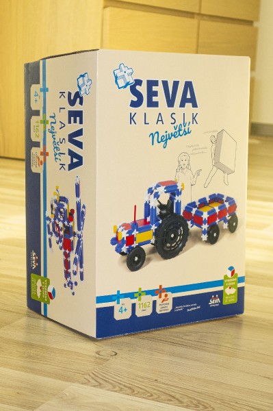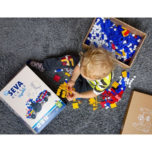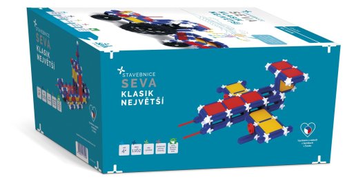 Stavebnice Seva Klasik Největší obsahuje 1164 dílků. Balení je výhodné nejen pro školky a díky praktickému balení bude úklid také hračkou... Z dílků si můžete poskládat autíčka, loď, jeřáb, nábytek...Věkové určení 4+