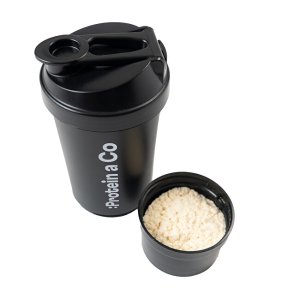 Shaker o objemu 500 ml se zásobníkem a mřížkou pro rozmíchání instantních nápojů.