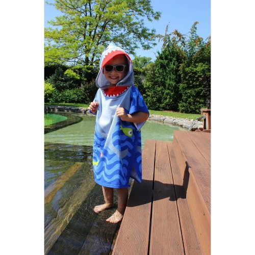 Ručníkové pončo pro děti Merco Shark je ideálním doplňkem na pláž či k bazénu. Je vyrobené ze 100% polyesteru, skvěle saje a vaše dítě bude tak během chvilky suché. Pončo je lehké a skladné, zabere minimum místa ve vaší tašce či kufru. Volný střih umožňuje snadné převlékání. - materiál: 100% polyester - rozměry: 60 x 60 cm (bez kapuce) - hmotnost: cca 230 g