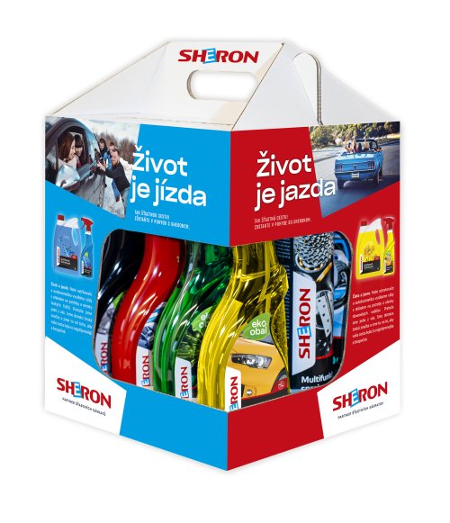 SHERON Dárkový box je prémiové balení autokosmetiky v praktické box krabici s odnosným uchem.