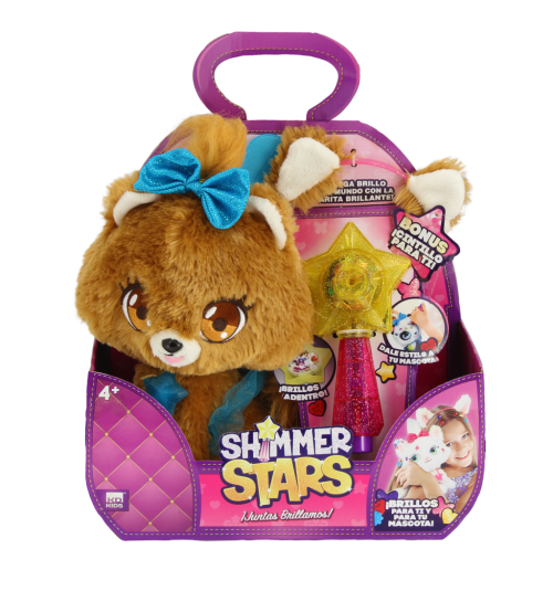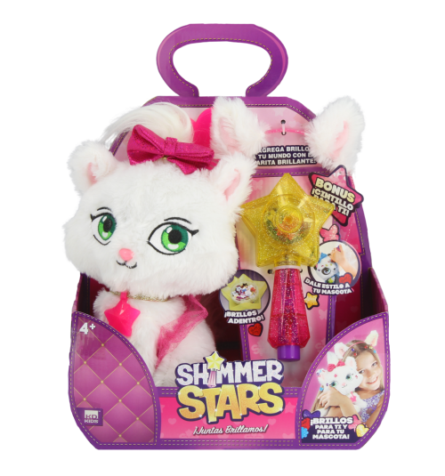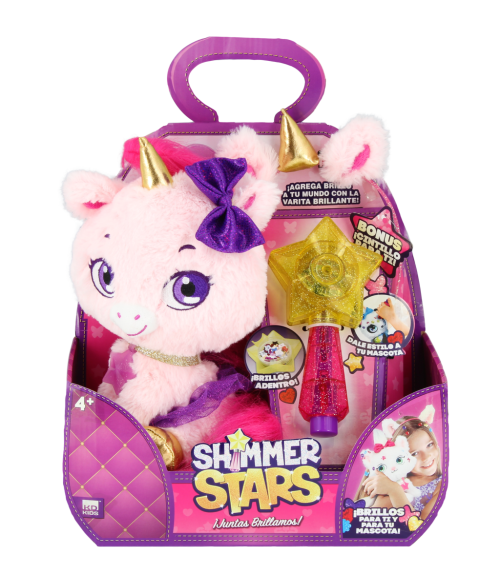 Shimmer Stars je plyšové zvířátko, které si můžeš jakkoliv ozdobit. Musíš použít jen kouzelnou hůlku. Výrobek obsahuje také čelenku, hřebínek a ozdobnou známku na krk. Hračka je vhodná pro děti od 4 let.