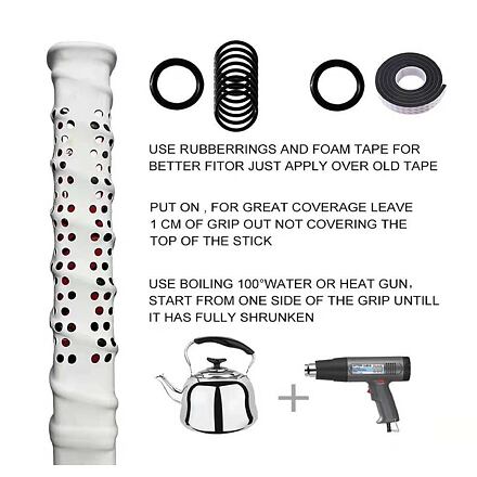 Koncovka na hokejku Merco Shrink Grip nahrazuje klasické textilní omotávky na horní část hokejky a je vhodná pro hráče i brankáře. Polyethylenová koncovka je příjemná na dotek a chrání rukavici proti brzkému opotřebení. S koncovkou budete mít větší kontrolu nad hokejkou. Na konci nechte při nasazování přibližně 3 cm přesah, aby tak koncovka dobře držela na hokejce. Koncovku jednoduše upevníte pomocí přiložených kroužků či pásky a poté doporučujeme použít horkovzdušnou pistoli. Pokud ji nemáte k dispozici, výrobce uvádí také možnost polít vařící vodou pro její stáhnutí. - smrštitelný návlek bez perforace - rozměr: 25 x 6.4 cm - materiál: PE