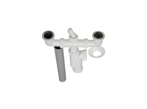 Dvoudřezový sifon T-724 DN50/DN40. Sifon s nerezovou mřížkou průměr 70 mm a přípojkou myčky nebo pračky. Pryžová zátka s očkem součást balení. Odtok průměr 40 nebo 50 mm, redukce je součásti balení. Průtok 0.9 l/s, teplotní odolnost do 95 C°, materiál PP, pro dřezy s roztečí otvorů 210 až 310 mm. Slovenský výrobce. EAN 8584049000709