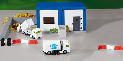 Aby se lidé cítili dobře, musí být město čisté a uklizené. Přesně to poskytuje tato sada od Siku, skládající se ze zametače ulic a popelářského vozu. Nepřekonatelné duo uklízí špínu a odpadky z ulic a náměstí a je ideálně vybaveno pro všechny úkoly. Obě vozidla mají dvounápravový plastový podvozek s volnoběžnými koly a kovovou kabinou řidiče. Zametací vůz v oranžovém odstínu má nástavbu a sací zařízení z plastu. Na zametacím voze je nápis „ Respect the planet“. Popelářský vůz v zeleném odstínu může plastovou nástavbu sklopit a otevřít zadní klapku. Rozměry balení: 7,8 x 19,7 x 3,2 cm. Věk: 3+