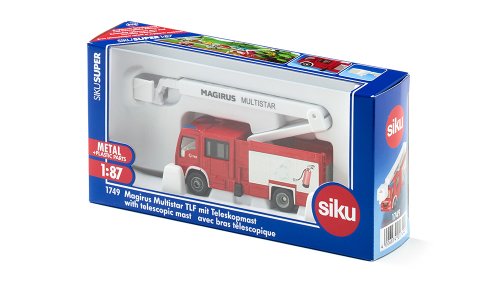 SIKU Super – Magirus Multistar TLF je jedinečná, celosvětová kombinace hasičského a záchranného vozu s teleskopickým zvedákem a záchranným košem. S tímto úžasným vozidlem může hasičský záchranný sbor uhasit požár ve výškách a zároveň tak zachránit životy. U SIKU vozidla může být rameno vysouváno postupně a může se otáček o 360 stupňů. Výsuvné opěry stabilizují vozidlo pro záchranu ve výšce. Vozidlo SIKU je velmi detailně vyrobené, a to z kvalitního a odolného materiálu. Měřítko: 1:87. Věk: 3+. Rozměr: 165 x 29 x 180 mm. Rozměr balení: 17,5 x 8,7 x 5,9 cm.