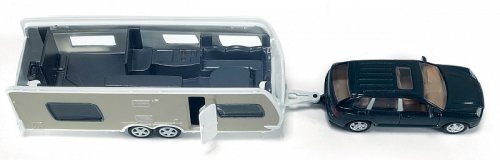 Sada s Porsche Cayenne Turbo jako tažné auto a "Exclusive Emotion" karavan od firmy Dethleff tvoří nepřehlédnutelný komplet. Porsche Cayenne je vypracován do jemných detailů a karavan s mnoha funkcemi a velkým množstvím nápisů dotváří dobrý pocit z tohoto modelu. Karavan má odnímatelnou střechu, takže můžete bez problémů nahlédnout dovnitř a hrát si s figurkami, které jsou součástí sady. Karavanu, stejně jako modelu Porsche, se otevírají dveře. Sada také obsahuje čtyři figurky, dvě židle, stolek, lehátko, gril a slunečník. Rozměr: 228 x 44 x 47 mm. Rozměr balení: 25,5 x 5,9 x 11,5 cm. Věk: 3+
