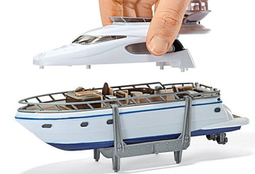 Těžkotonážní tahač MAN s valníkem a velkou luxusní motorovou jachtou si již nemusí dovolit pouze bohatí z riviéry. Tahač a valník jsou vyrobeny převážně z kovu. Motorová jachta Drettmann je z plastu a díky odnímatelnému vršku kajuty si budete moci prohlédnout detailně vypracovaný interiér. Okuste chuť luxusu! Měřítko: 1:87. Rozměr: 268 x 61 x 110 mm. Rozměr balení: 30,5 x 7,1 x 15,1 cm. Věk: 3+