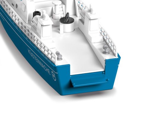 Policejní loď čeří vodu a stíhá pašeráky. Policie zapíná modré a červené blikající LED světla a elektrickou sirénu. Pašeráci se snaží uniknout z teritoriálních vod. Jedinou možností jak je zastavit, je použít vodní dělo: „Zapněte dělo“! Vodní dělo tak zastaví loď a policisté použijí naviják a lano k přitažení lodi směrem k policejnímu člunu. Na zádi je otevřena klapka a loď je vytažena na palubu. Hotovo! Pašeráci byli zajati. Nová policejní loď SIKUWORLD plave a je voděodolná. Když je loď ukotvena, je také k dispozici velká bóje. Baterie: 3x LR41 (baterie jsou součástí balení). Rozměr: 318 x 88 x 138 mm. Rozměr balení: 45 x 15 x 18,7 cm. Věk: 3+