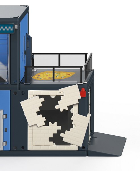 SIKU World – policejní stanice. Dvoupodlažní budovu lze sestavit dle ilustrovaného návodu. Z montážních části mohou být jednotlivé budovy sestaveny ve tvaru L, U nebo jako vícepodlažní budovy. Nový systém stavebních prvků, modulární struktura a stabilita systému push-fit dává dětem prostor pro kreativitu a podporuje rozvoj motorické a kognitivní dovednosti dítěte. Dále posiluje sebevědomí a schopnost vytvářet bez pomoci dospělých. Policejní stanice je kompatibilní s ostatními sadami v SIKUWORLD, ale je plně funkční i samostatně. Sada obsahuje více než 110 dílů. Samolepky na budovu, doplňky, světelná a zvuková signalizace. Stěna s díly puzzle systému se rozbije při úniku zadrženého. Rozměr cca: 750 x 330 x 280 mm. Rozměr balení: 41 x 27,6 x 7,3 cm. Věk: 3+