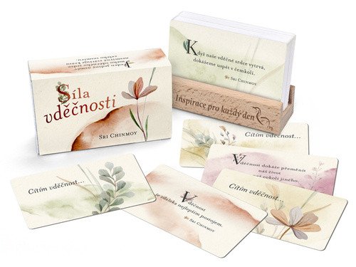 Tato krásně ilustrovaná sada 55 aforismů Sri Chinmoye nám pomáhá objevit kouzlo a sílu vděčnosti, která našemu životu dodává radost, štěstí a naplnění. S dřevěným gravírovaným stojánkem, který slouží k vystavení kartiček.