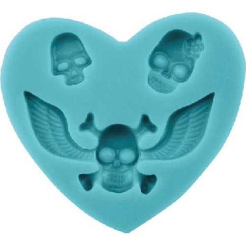 Silikonová forma s motivy srdíčka a lebky vhodná pro tvorbu jedlých dekorací na dort.