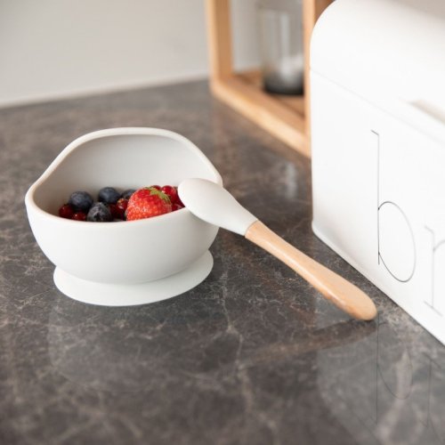 Miska s přísavkou a lžičkou, která naučí Vaše dítě jíst samostatně, bez potřeby držení či krmení jinou osobou.