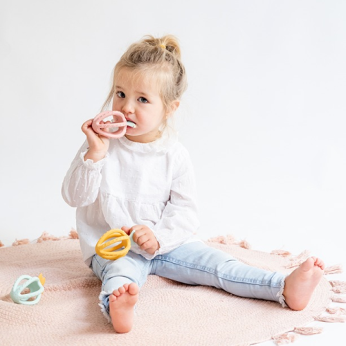 Silikonové kousátko pomáhající tišit bolest v období růstu prvních zoubků.