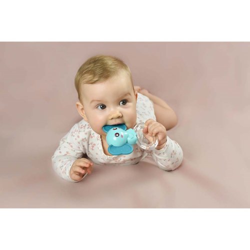 Barevné dětské chrastítko. Výška cca 10 cm. Určeno pro děti od 3 měsíců života.